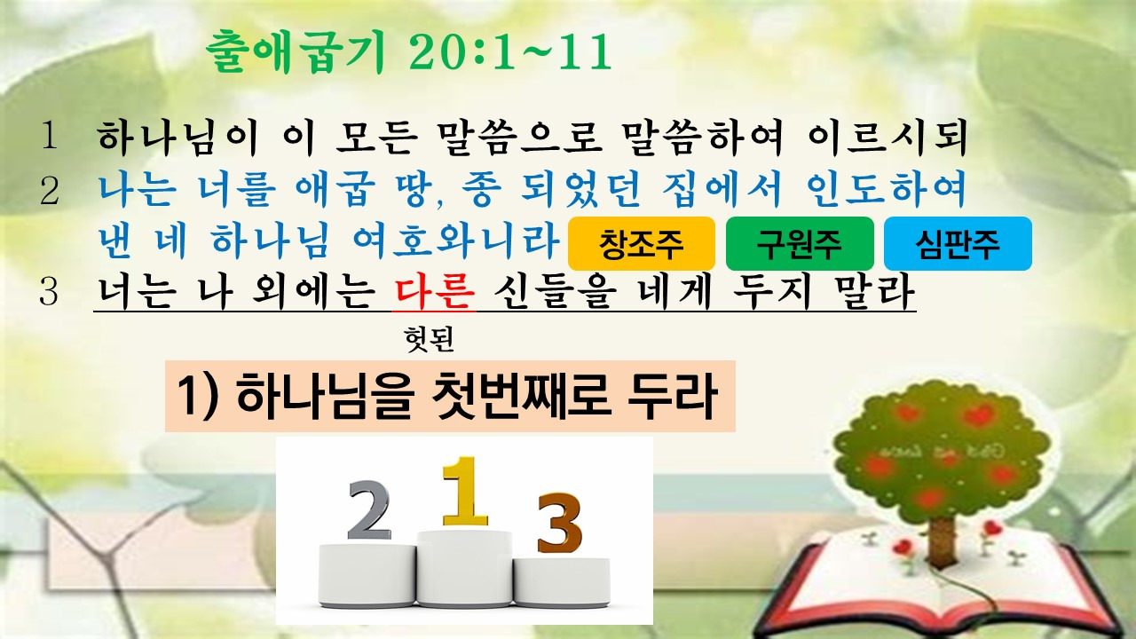 (출 20:3) 너는 나 외에는 다른 신들을 네게 두지 말라
